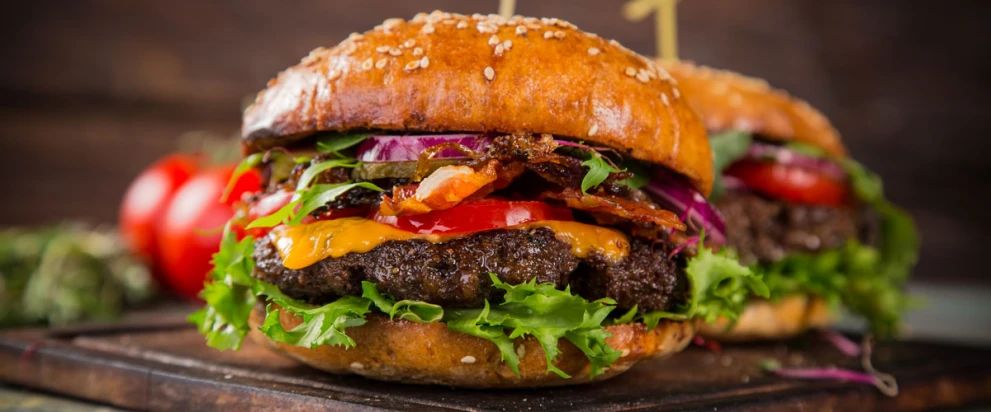 2 x 180g Rindfleischburger mit Tomaten, Zwiebeln, Ketchup und Käse